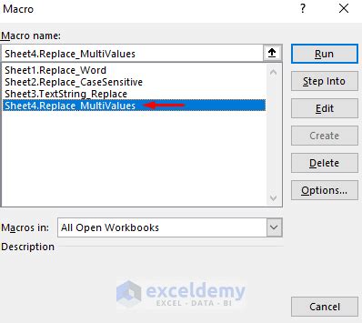 macro for find and replace. There are any references about macro for find and replace in here. you can look below.
