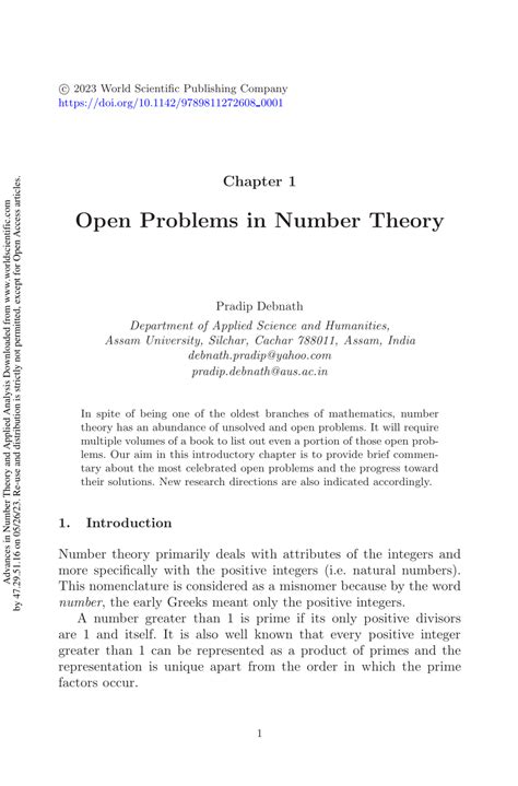 open problems in number theory. There are any references about open problems in number theory in here. you can look below.