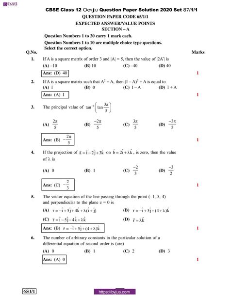 previous year question paper maths class 12 state board pdf