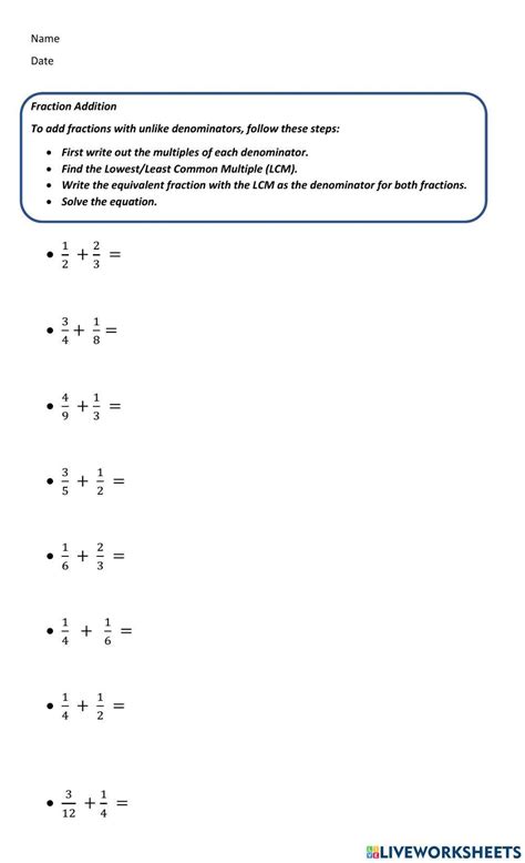 rules for adding fractions with different denominators worksheet