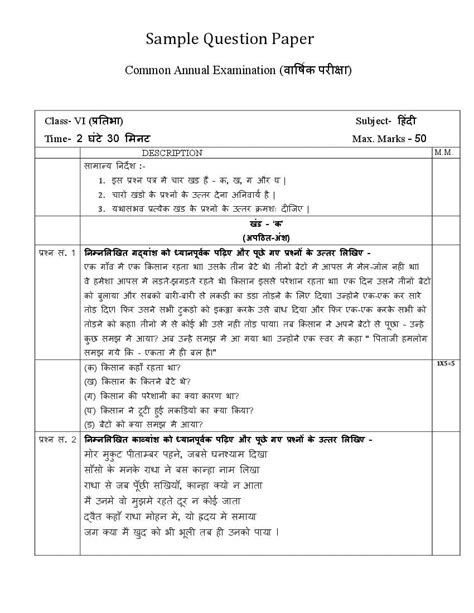 sample paper for class 6th hindi. There are any references about sample paper for class 6th hindi in here. you can look below.