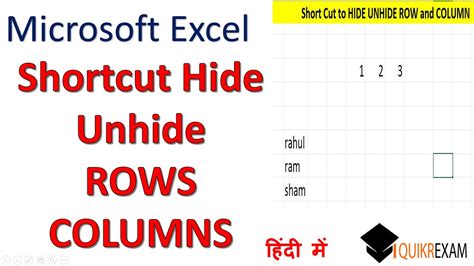shortcut key for hide and unhide rows and columns in excel