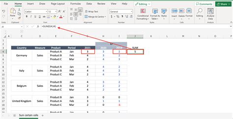 sum only certain cells in excel