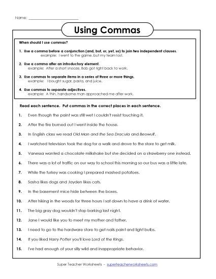 use of commas worksheet pdf