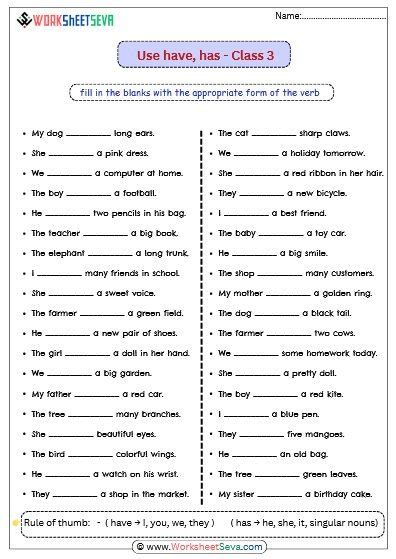 use of has have for class 3rd