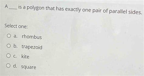 what is a polygon with exactly one pair of parallel sides. There are any references about what is a polygon with exactly one pair of parallel sides in here. you can look below.