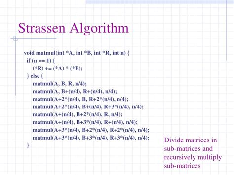 what is strassen matrix multiplication algorithm. There are any references about what is strassen matrix multiplication algorithm in here. you can look below.