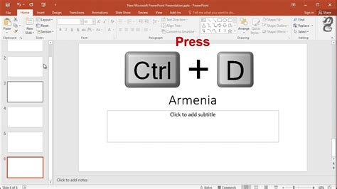what keyboard shortcut duplicate a slide in microsoft powerpoint 2016