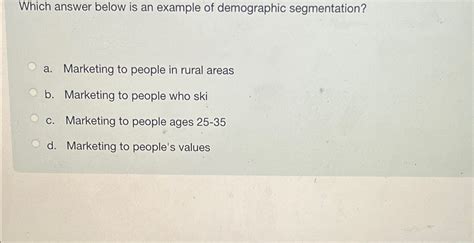 which answer below is an example of demographic segmentation. There are any references about which answer below is an example of demographic segmentation in here. you can look below.